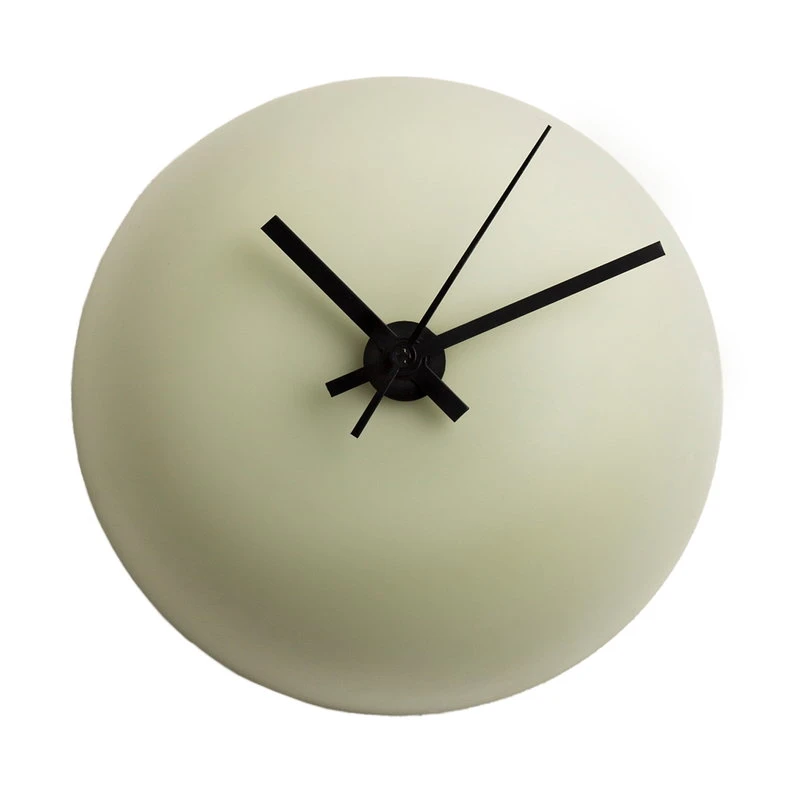 Die Alva-Uhr von Katriina Nuutinen ist eine herrlich verspielte und zugleich minimalistische Wanduhr, die aus einer mundgeblasenen Glaskuppel und schlichten schwarzen Zeigern besteht. Die Größe der Uhr ist sympathisch klein: Sie misst weniger als 14 cm im Durchmesser. Die lustige konvexe Form macht die Alva-Uhr jedoch zu einer unverwechselbaren Dekoration für jeden Raum. Das unter der matten Glaskuppel verborgene Uhrwerk ist völlig geräuschlos, wodurch sich die Alva-Uhr besonders für das Schlafzimmer oder den Arbeitsbereich eignet, wo das Ticken den Schlaf oder die Konzentration stören könnte. Die Alva-Wanduhr wird in Finnland hergestellt.