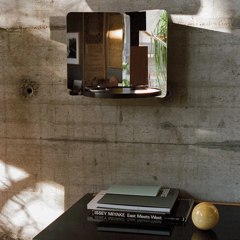 Die Kollektion 124 von Artek umfasst skulpturale Spiegel, die mit Licht und Reflexionen spielen. Die von Daniel Rybakken entworfenen Spiegel wurden nach ihrer charakteristischen Form benannt: Zwei dünne, polierte Stahlbleche treffen in einem 124-Grad-Winkel aufeinander. Durch die Verwendung von Stahlblech ist der Spiegel rahmenlos, bruchfest und extrem dünn. Die Kollektion 124 umfasst drei Spiegel in verschiedenen Größen, die entweder an der Wand montiert oder als freistehende Objekte verwendet werden können. Die mittelgroße Version hat zudem eine kleine Holzablage, die durch den Spiegel betrachtet rund erscheint.