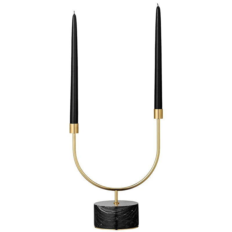 Der Kerzenhalter Grasil der dänischen Marke AYTM vereint auf beeindruckende Weise eleganten Marmor mit starkem Eisen. Die Grasil-Kollektion umfasst hohe Kerzenhalter, die auf den Boden gestellt werden können, und kleinere Kerzenhalter für den Tisch. Die Halter sind so konzipiert, dass zwei oder drei traditionelle Spitzkerzen hineinpassen. Der dunkel schattierte Marmor bildet eine stabile Basis für den schönen Eisenstiel mit seiner schwarzen oder goldenen Oberfläche.