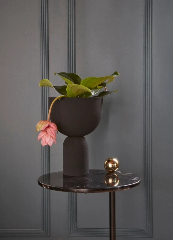 Der Torus-Blumentopf der dänischen Marke AYTM zeichnet sich durch eine feine Balance verschiedener geometrischer Formen aus. Das trichterförmige Pflanzgefäß besteht aus einem oberen Teil aus pulverbeschichtetem Eisen und einem schmalen Sockel. Das Design bietet Ihren Zimmerpflanzen bestmögliche Wachstumsbedingungen. Der schmale Sockel dient als praktisches Auffangbecken für überschüssiges Wasser. Mit seiner luftigen, geschichteten Struktur ist der Torus auch in leerem Zustand ein meisterhaftes Designstück.