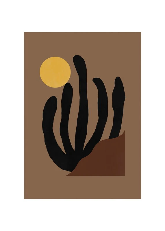 Das Canyon-Poster von Paper Collective lädt Sie auf eine Reise zum Grand Canyon an einem heißen Sommertag ein: In seinen abstrakten Formen sind die Silhouetten eines Kaktus, eines Felsen und der Sonne zu erkennen. Die dunklen Orange-, Braun- und Schwarztöne lassen aber auch Raum für eigene Interpretationen in Bezug darauf, was die Komposition des Künstlers Denis Boudart darstellen könnte.