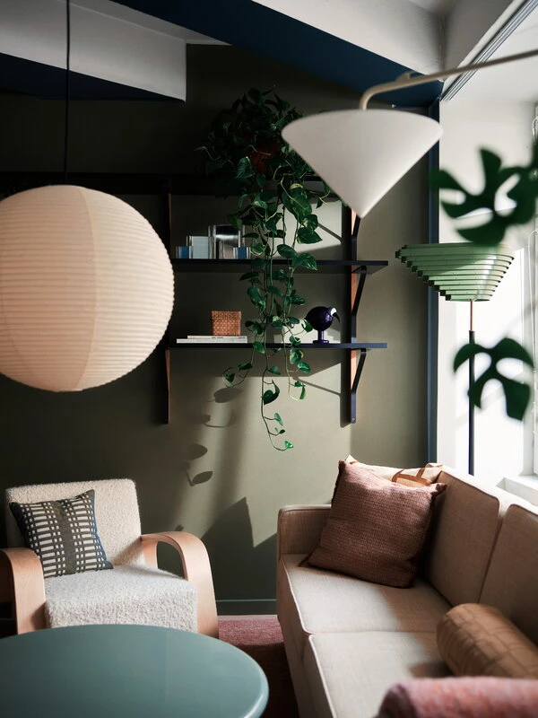 Der Farbton i06 Eino von Cover Story ist ein erdiges, stimmungsvolles Grün, das den Raum mit der beruhigenden Wirkung eines moosbewachsenen Waldbodens erfüllt. Der gedämpfte, stimmungsvolle Farbton passt gut zu anderen dunklen Farbtönen, doch in Kombination mit helleren Farben wird seine beruhigende Wirkung noch verstärkt. Unter direkter Sonneneinstrahlung changiert der leicht trübe, gräuliche Farbton zu einem Olivgrünton.
