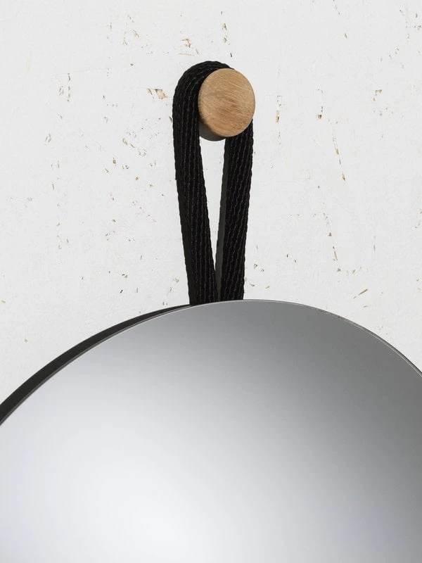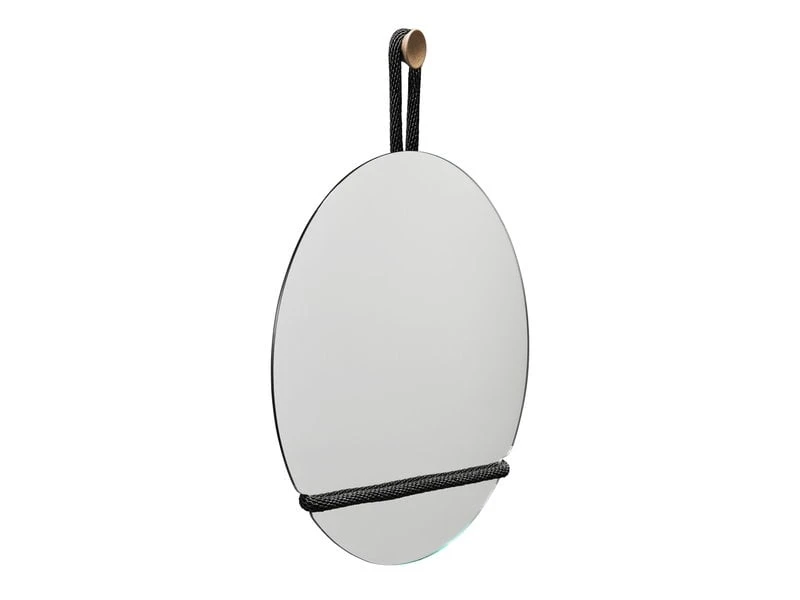| Material | Spiegelglas, verzinkte Eisenrückwand mit schwarzer Pulverbeschichtung, Nylonseil, Eichenknauf |