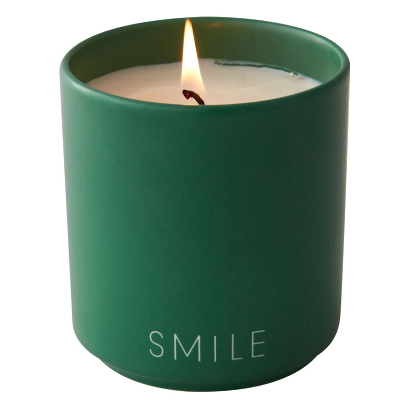Die Duftkerze von Design Letters wurde in einen Becher aus feinem Knochenporzellan gegossen. Der Becher ist mit dem Wort „SMILE“ verziert – eine Einladung, der Welt mit einem Lächeln zu begegnen! Nachdem die Kerze heruntergebrannt ist, können Sie den Becher nach Belieben wiederverwenden, zum Beispiel als Teelichthalter oder als Aufbewahrungsgefäß. Die süßlich duftende Kerze ist eine tolle Geschenkidee für eine Einweihungsparty oder zum Geburtstag – aber die wunderschöne Flamme verschönert auch den Alltag.