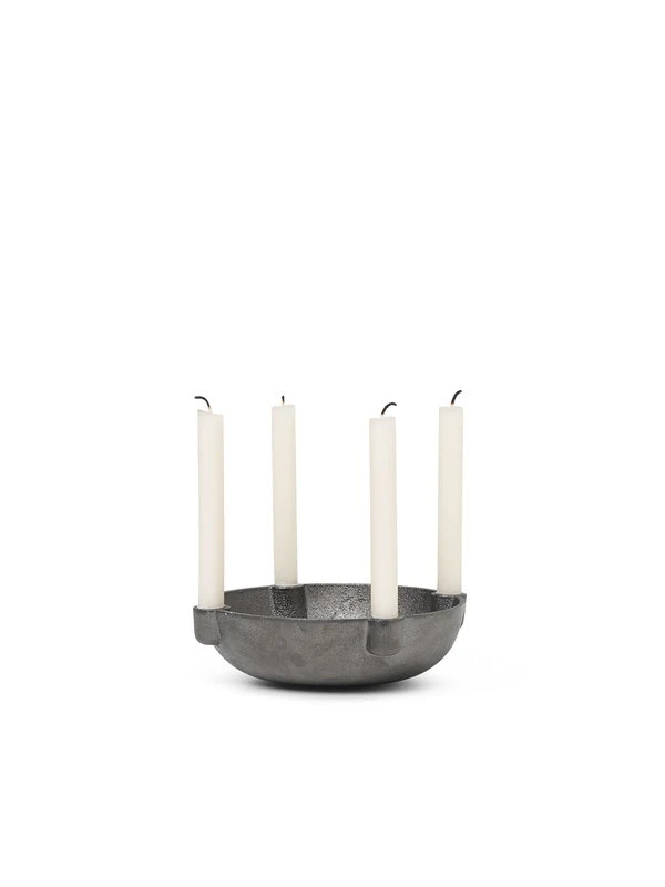Der Bowl-Kerzenhalter von ferm LIVING ist Leuchter und Schale in einem: Sie können Tannenzapfen, Nüsse oder andere Dekorationen in die Mitte stellen und so wunderbare Stillleben-Kompositionen kreieren. Verwenden Sie den Kerzenhalter als Mittelpunkt Ihres gedeckten Tisches oder stellen Sie ihn auf eine Fensterbank. Bitte denken Sie daran, den Kerzenhalter sicher zu verwenden und alle brennbaren Dekorationen von den Kerzen fernzuhalten. Der Bowl-Kerzenhalter ist aus schwarz patiniertem Messing gefertigt.