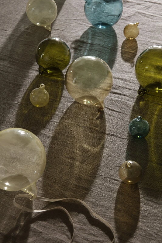 Die gläsernen Weihnachtkugeln von ferm LIVING sorgen für einen zarten, minimalistischen Look in der Weihnachtszeit. Die farbenfrohen Ornamente aus mundgeblasenem Glas werden mit einem 1,6 m langen Band geliefert, an dem Sie die Kugeln bequem aufhängen und an einer Tanne, einer Wand oder einem Türgriff befestigen können, um eine festliche Atmosphäre zu schaffen.