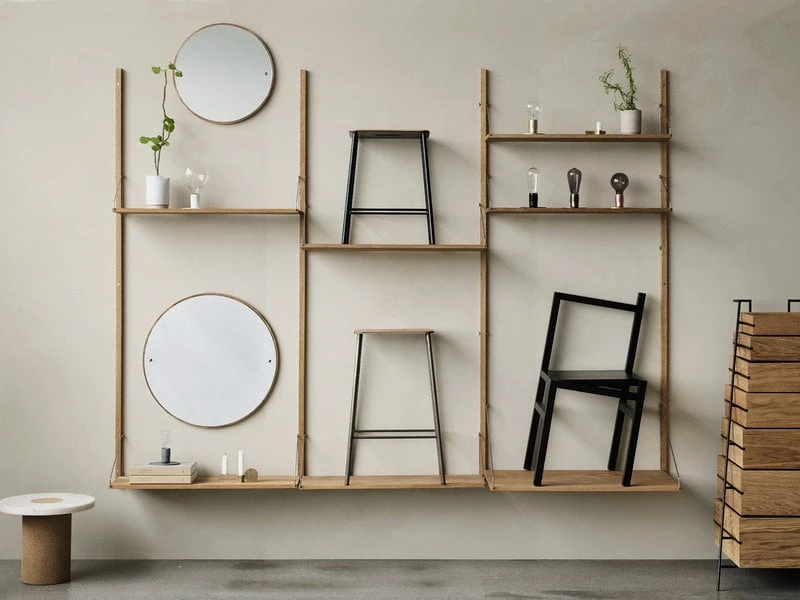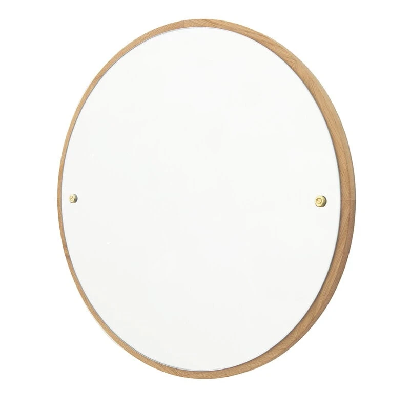 Der CM-1 Spiegel von Frama besteht aus einer runden, massiven Rückwand aus Eichenholz und einem Spiegelglas mit sichtbaren Messingschrauben, die das Erscheinungsbild des Spiegels unterstreichen. Dank seiner schlichten, zeitlosen Form eignet sich der CM-1 Spiegel gleichermaßen als Ankleidespiegel im Flur oder als dekorativer Spiegel im Wohnzimmer. Der elegante Wandspiegel hat ebenfalls Einflüsse aus dem nordischen Design der 1950er-Jahre.