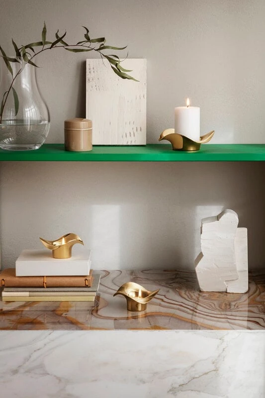 Der Cobra-Säulenkerzenhalter von Georg Jensen zieht mit seiner golden glänzenden Metalloberfläche, die den Kerzenschein auf eine fesselnde Art und Weise reflektiert, alle Blicke auf sich. Die organischen Linien des Kerzenhalters gleichen schmelzendem Wachs – beinahe, als ob der Kerzenständer zu schmelzen begänne. Der Cobra-Kerzenhalter wurde für Tischkerzen entworfen.