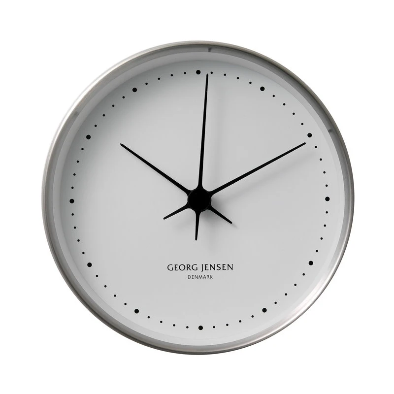 Die Wanduhr Henning Koppel von Georg Jensen ist eine gelungene Kombination aus dänischer Funktionalität und Stil. Die Uhren der Designerlegende Henning Koppel wurden bereits 1978 auf den Markt gebracht. Aufgrund ihrer zeitlosen Eleganz wurden die Uhren später von Georg Jensen wieder eingeführt. Zu den charakteristischen Merkmalen der Henning-Koppel-Uhren gehören einzigartige schwarze Zeiger auf einem schlichten weißen Zifferblatt. Das optische Erscheinungsbild der Kollektion ist nahezu unverändert geblieben, doch die Kollektion wurde später um neue Farben und Materialien erweitert.