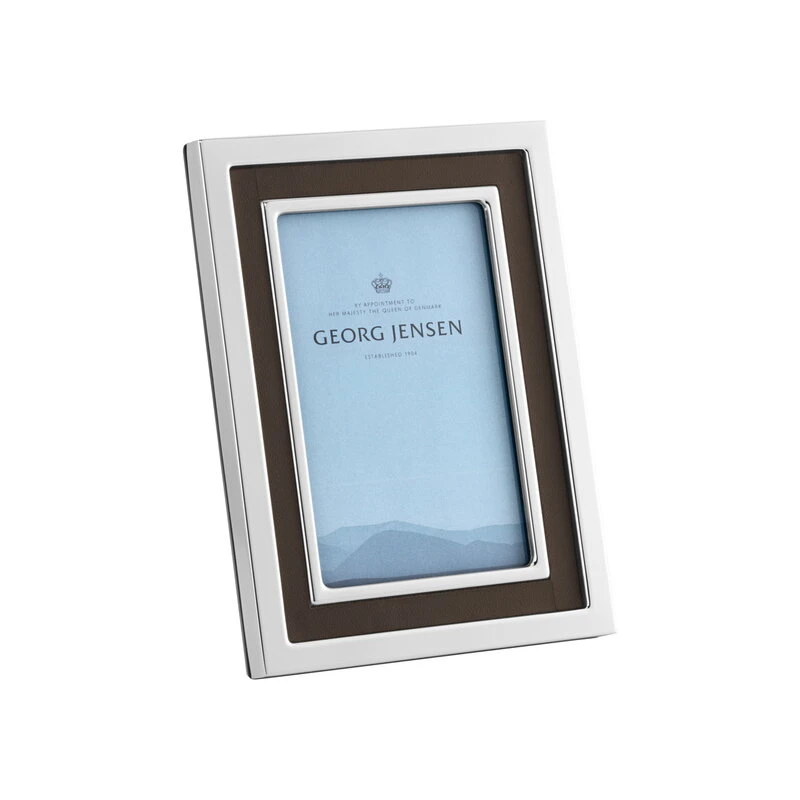 Mit dem kleinen Manhattan-Bilderrahmen von Georg Jensen können Sie Ihre wichtigsten Erinnerungsstücke mit dem Respekt ausstellen, den sie verdienen. Den Bilderrahmen zieren stilvolle Leder- und Edelstahlränder, die jedem Bild einen Hauch von Eleganz verleihen. Der elegante Rahmen lässt sich sowohl hochkant als auch im Querformat aufstellen.
