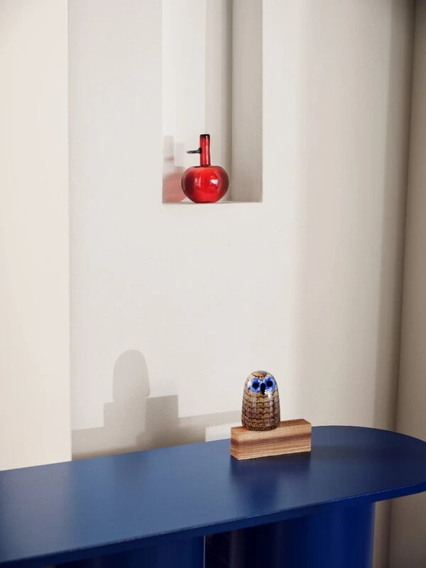 Der gläserne Apfel ist aus cranberryrotem Glas gefertigt und mit einem reflektierenden, glänzenden Blatt versehen. Die Glasskulptur ist ein Paradebeispiel für Oiva Toikkas kühnen, frechen und experimentellen Designansatz. Jede dieser originellen Früchte wird in der Iittala-Glasfabrik in Finnland aus mundgeblasenem Glas hergestellt und ist somit ein einzigartiges Kunstwerk, das nicht nur die grenzenlose Fantasie von Oiva Toikka, sondern auch die erstaunlichen Fähigkeiten der Glasbläser:innen von Iittala unter Beweis stellt.