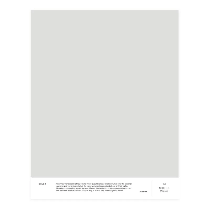 Die Innenfarbe von Cover Story im Farbton 010 Sophie ist ein wunderschönes Hellgrau mit sanften blauen Untertönen. Die matte Farbe sorgt für ein glattes, nicht reflektierendes Finish.