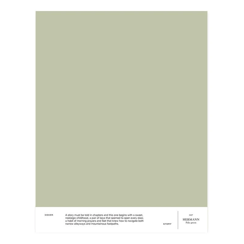 Die Innenfarbe von Cover Story im Farbton 027 Hermann ist ein sanftes Hellgrün mit gelben Untertönen, das den Raum mit einer ruhigen, natürlichen Atmosphäre erfüllt. Hermann ist eine matte Farbe und sorgt für ein glattes, nicht reflektierendes Finish.
