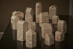 Die Urbania-Laternen von Kähler stellen eine Vielzahl von Gebäuden dar, von Hochhäusern bis hin zu berühmten Wahrzeichen, und bieten eine moderne Alternative zu den traditionellen Laternen in Hausform. Jede der von Mette Bache und Barbara Bendix Becker entworfenen Keramiklaternen ist mit handgeschnitzten Fenstern versehen, die der Laterne nicht nur ein interessantes, unverwechselbares Aussehen verleihen, sondern auch dafür sorgen, dass der warme Schein eines Teelichts schöne Lichtmuster um die Laterne wirft. Wählen Sie Ihre Lieblingslaterne aus oder sammeln Sie die gesamte Serie, um eine ganze Stadt aus leuchtenden Gebäuden zu erschaffen!
