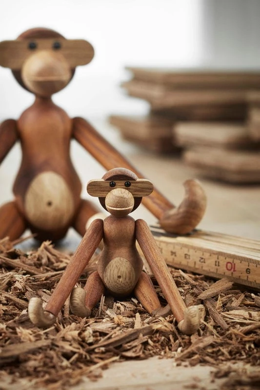 Bojesens Affe mit seinem verschmitzten Blick und dem hellen Bauch verwandelt seit 1951 Kinderzimmer in Dschungel und weckt Träume von fernen Orten. Er hat eine feste Rolle im dänischen Fernsehen als Maskottchen von Wildsendungen und als Preis in Quizsendungen. Jeder Affe besteht aus 31 Holzteilen und wird in Dänemark in Handarbeit hergestellt. Durch leichte Variationen in Farbton und Holzmaserung haben die Affen eine einzigartige und charmante Persönlichkeit.