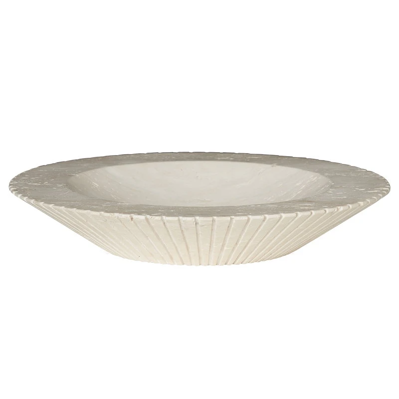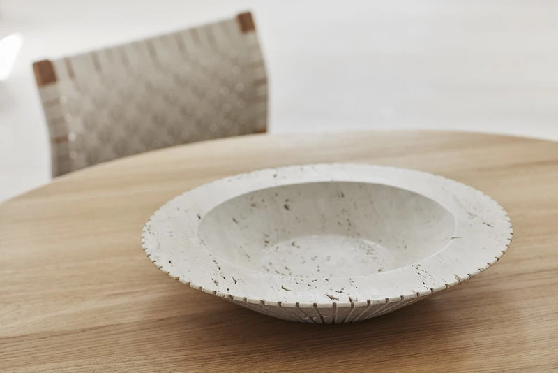 Mit der Locus-Schale von Fredericia interpretiert die Designerin Sofie Østerby alte Steinmetztechniken. Die Schale ist aus unbehandeltem Travertin-Kalkstein gefertigt und ihren äußeren Rand verzieren geschnitzte Rillen. Die Locus-Schale eignet sich gleichermaßen gut als dekoratives Objekt oder als Aufbewahrungsschale für wichtige Kleinigkeiten.