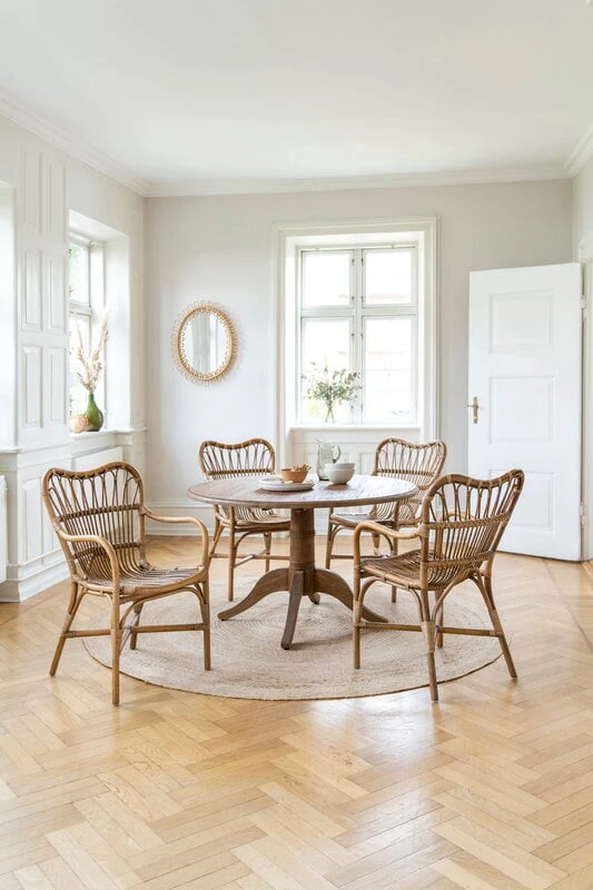 Der Luella-Spiegel von Sika-Design wird von einem wellenförmigen Rattangeflecht umschlossen, das einen wunderschönen, ornamentalen Kranz um den Spiegel bildet. Der Spiegel wurde in den 1950er-Jahren von dem italienischen Designerduo Franco Albini und Franca Helg entworfen. Der Rattanspiegel ist Teil der Icons-Kollektion von Sika-Design, die Rattan-Klassiker von einigen der talentiertesten Designer:innen unserer Zeit umfasst.