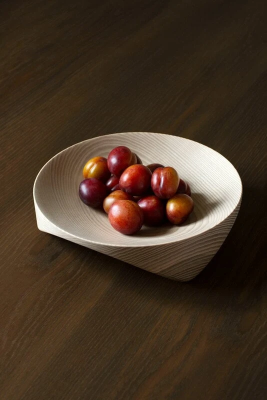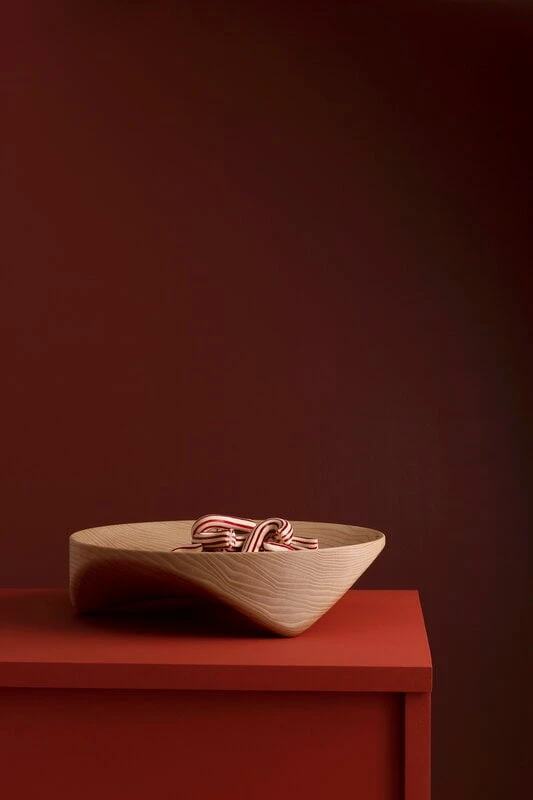 Die vom norwegischen Duo Torbjørn Anderssen und Espen Voll entworfene Måne-Schale wurde von den in vielen alten Kulturen verwendeten dreibeinigen Gefäßen inspiriert und nach einem norwegischen Wort für „Mond“ benannt. „Eine Holzschale hat etwas, das uns an rote Äpfel erinnert. Diese wiederum erinnern an das Stehlen von Äpfeln. Und das Stehlen der Äpfel erinnert an den Mond, der bei der Nacht-und-Nebel-Aktion scheint.“, beschreibt Anderssen die Logik hinter dem Design.