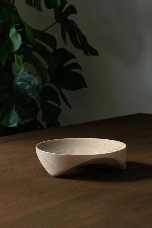 Die Måne-Schale von Nedre Foss ist ein rundes Holzobjekt, das sich durch geschwungene Linien und charakteristische Eschenholzmaserungen auszeichnet. Sie können die Holzschale sowohl zum Servieren von Nüssen oder Süßigkeiten als auch zur Aufbewahrung kleiner Gegenstände verwenden. Ihre glatte Oberfläche und die weiche, organische Form machen die Schale zu einem Objekt, das sowohl schön anzuschauen als auch anzufassen ist. Sie eignet sich ebenso gut als Geschenk.