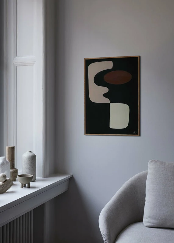 Das Poster Faces 01 von Paper Collective spielt mit dem Konzept des negativen Raums. Das von Mae Studio gestaltete Poster zeigt verschiedene organische Formen, die vor einem schwarzen Hintergrund komponiert sind, der ein Gesicht zu enthüllen scheint, wie der Name des Posters vermuten lässt.