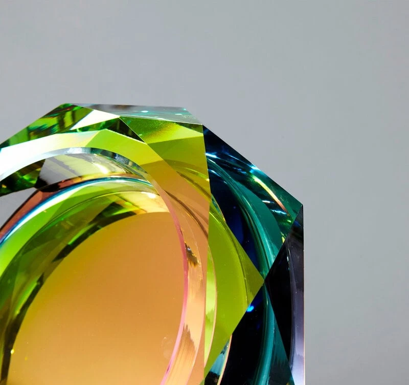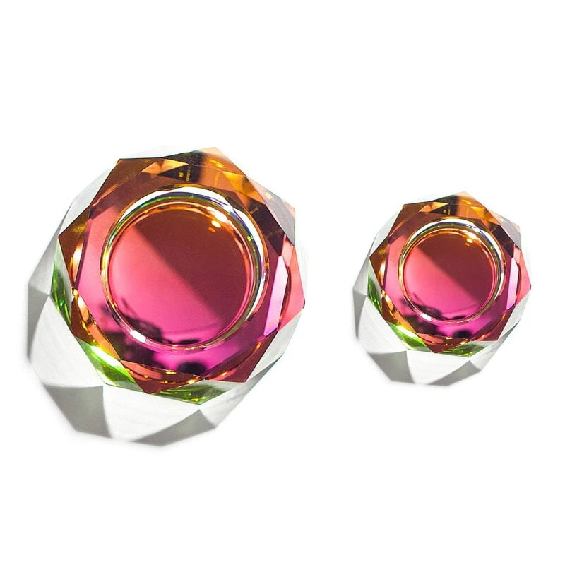 Die Regenbogen-Schale von Fundamental Berlin erstrahlt in allen Farben des Regenbogens. Die Schale wird von Hand aus Kristallglas geschliffen und mit einem speziellen Farbfilm beschichtet, der die verschiedenen Nuancen des Spektrums hervorhebt. Verwenden Sie die elegante Schale als Aufbewahrungsort für kleine Kostbarkeiten oder erfreuen Sie sich einfach daran, wie das Licht auf ihrer glänzenden Oberfläche funkelt und schimmert!