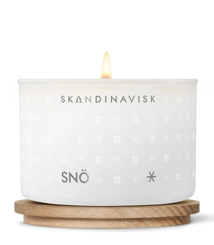 Die Duftkerze Snö von Skandinavisk verströmt einen frischen, winterlichen Duft mit Noten von winterlichen Beeren und gefrorenem Holz. Die Kerze wird in einer schönen Geschenkbox geliefert, hat einen Holzdeckel und eine Brenndauer von etwa 20 Stunden.