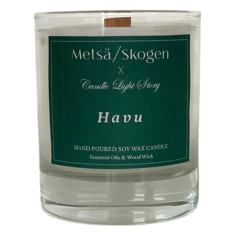 Die Sojawachskerzen von Metsä/Skogen bieten eine umweltfreundliche Alternative zu klassischen Stearinkerzen, da beim Abbrennen von Sojawachs keine Schadstoffe in die Innenraumluft freigesetzt werden. Die Kerzen werden in Finnland in Glasbehälter gegossen und zeugen durch ihre Oberfläche und den leicht geneigten Docht von hoher Handwerkskunst. Die Kerzen enthalten natürliche ätherische Öle, die für einen unverwechselbaren Nadelholz- und Waldduft sorgen: Zarte Noten von Fichte, Tanne, Rosmarin und Sandelholz erfüllen den Raum beim Entzünden der Kerzen. Das einzigartige Kerzenherz besteht aus Espenholz und sorgt beim Brennen für eine knisternde Atmosphäre.