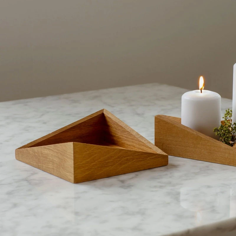 Die Diplo-Box von Spring Copenhagen ist eine kunstvoll gestaltete Aufbewahrungsbox aus Holz, entworfen von Studio Baki. Die quadratische Box aus Eichenholz hat ein lustiges, geometrisches Design: Ober- und Unterseite haben einen diagonalen Schnitt, so dass die Seiten eine dreieckige Form haben. Diplo eignet sich perfekt als Schmuckkästchen, Serviettenbox oder als Aufbewahrungsort für allerlei Kleinigkeiten.