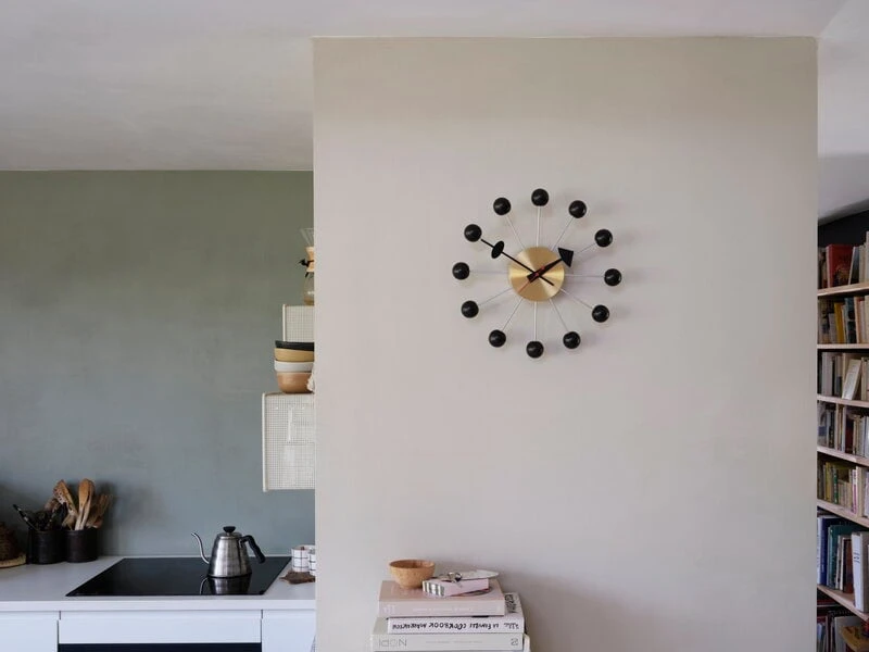 Vitras Ball Clock aus dem Jahr 1949 ist ein fröhliches und ikonisches Kunstwerk, das in jedem Raum zum Blickfang wird. Das hochwertige Quarzwerk und die sorgfältig gestalteten Details machen die Uhr nicht nur zu einem zuverlässigen Zeitmesser, sondern auch zu einem schönen Dekoelement.