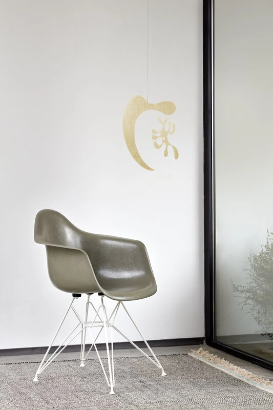 Die Plywood Mobiles von Vitra wurden in den 1940er-Jahren mithilfe der Sperrholzformtechniken von Charles und Ray Eames gefertigt. Die Experimente führten zu freien, organischen Formen, die sich spielerisch umeinander drehten und die das Ehepaar Eames als Mobiles an ihrer Decke aufhing. Die Plywood Mobiles erinnern auch an die Kunstwerke und Grafiken von Ray Eames.