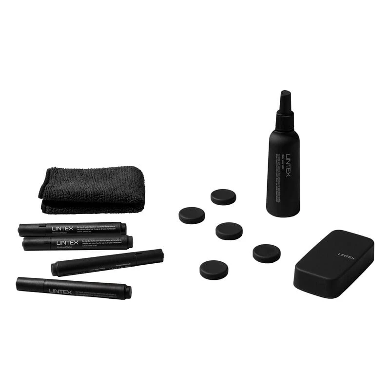 Das Zubehörset von Lintex hat das gleiche stilvolle Design wie die eleganten Memoboards der Marke im zeitlosen schwarzen Monochrom-Look.